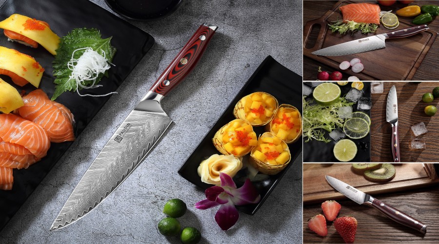 Plume Luxe Damascus Chef Knives